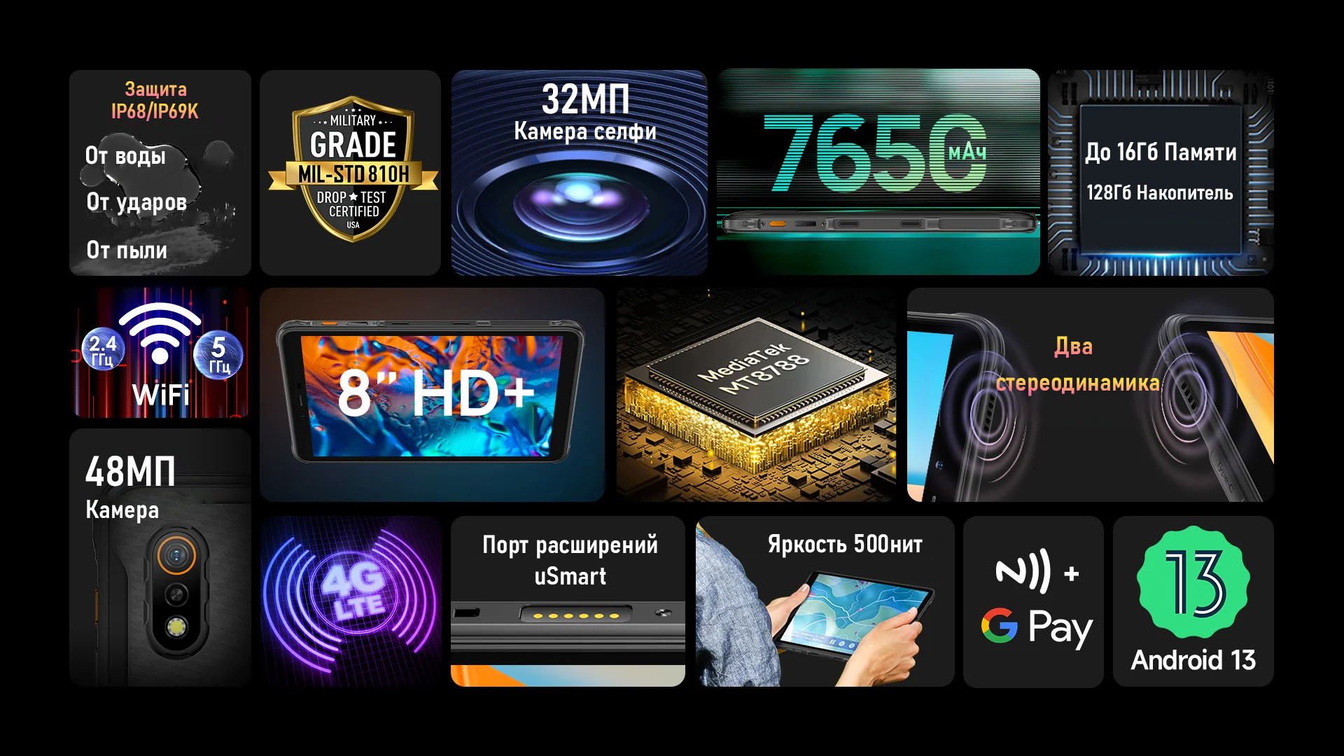 2. Данные на странице являются теоретическими значениями из лаборатории Ulefone, основанными на конкретной тестовой среде (подробности см. в конкретном описании). При фактическом использовании могут быть небольшие различия из-за различий в продуктах, версиях программного обеспечения, условий использования и факторов окружающей среды, поэтому фактическая ситуация указывается как окончательная.